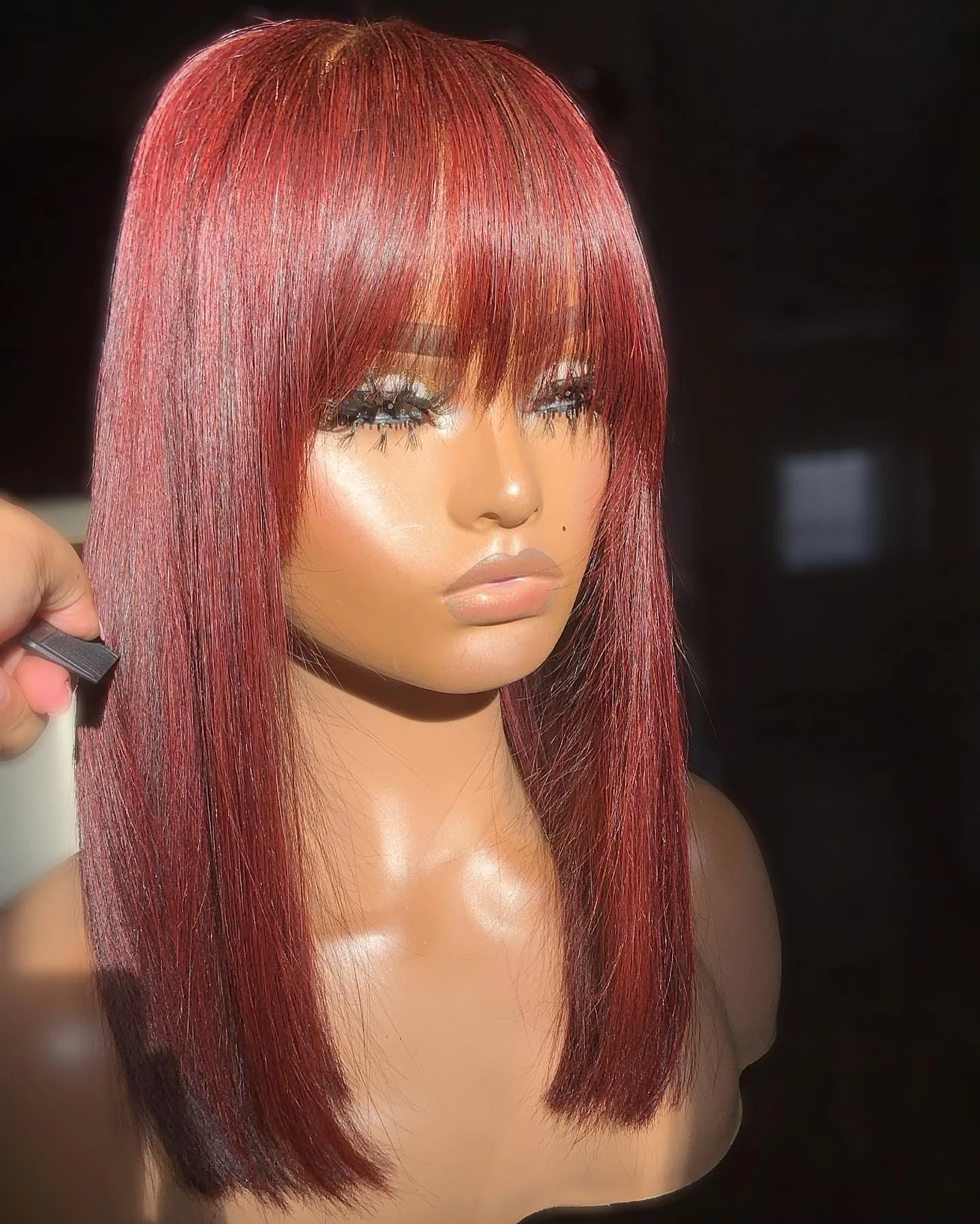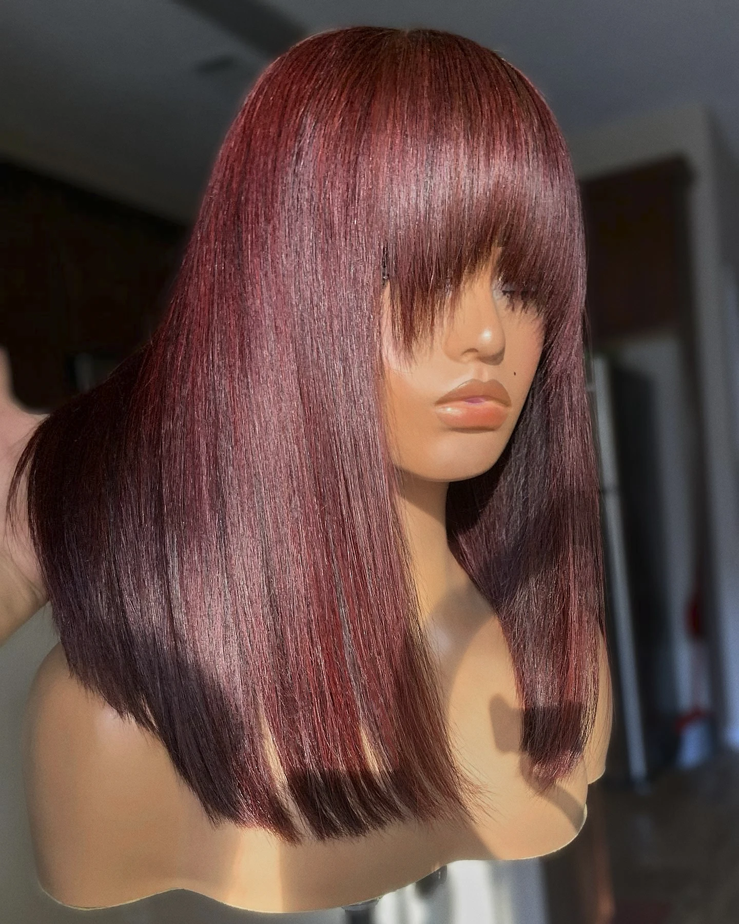 99j Burgundy Red Short Human Hair Wig With Fringe For Women Straight Remy Hair Bob Wigs With Bangs Dark Brown Balayage Color Full Machine Wigs Aliexpress